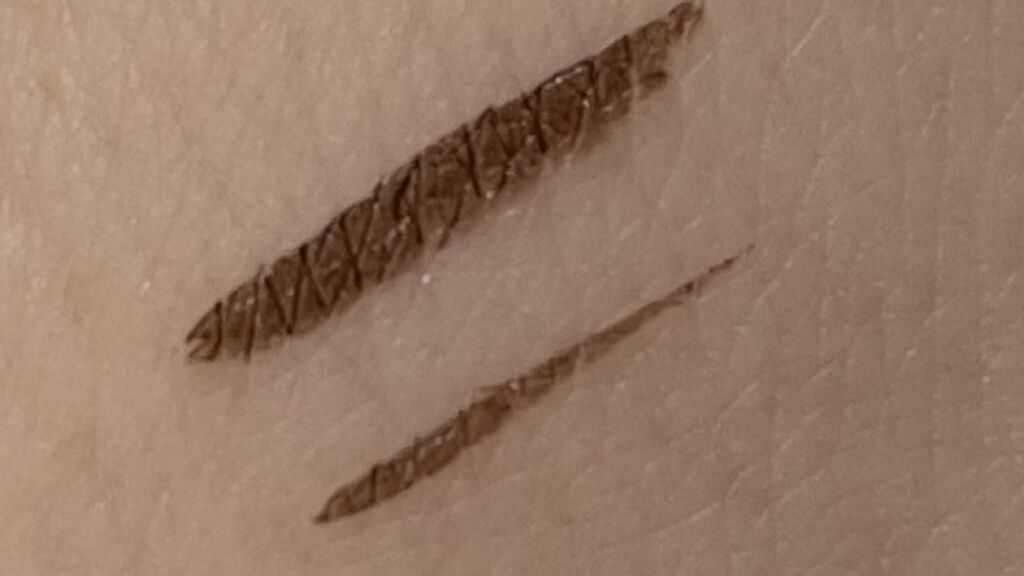 高発色がかなりいい!インクの密度も高い。 ブラウンすきずブラックすぎない程よい垢抜け感のあるカラーも素敵です💓 滲みにくく汗や摩擦に強いので朝から晩まで直しなしでも続く高発色。 まつげや瞼に優しいケア成分も配合してるみたいなので、目元に優しいアイテムです。