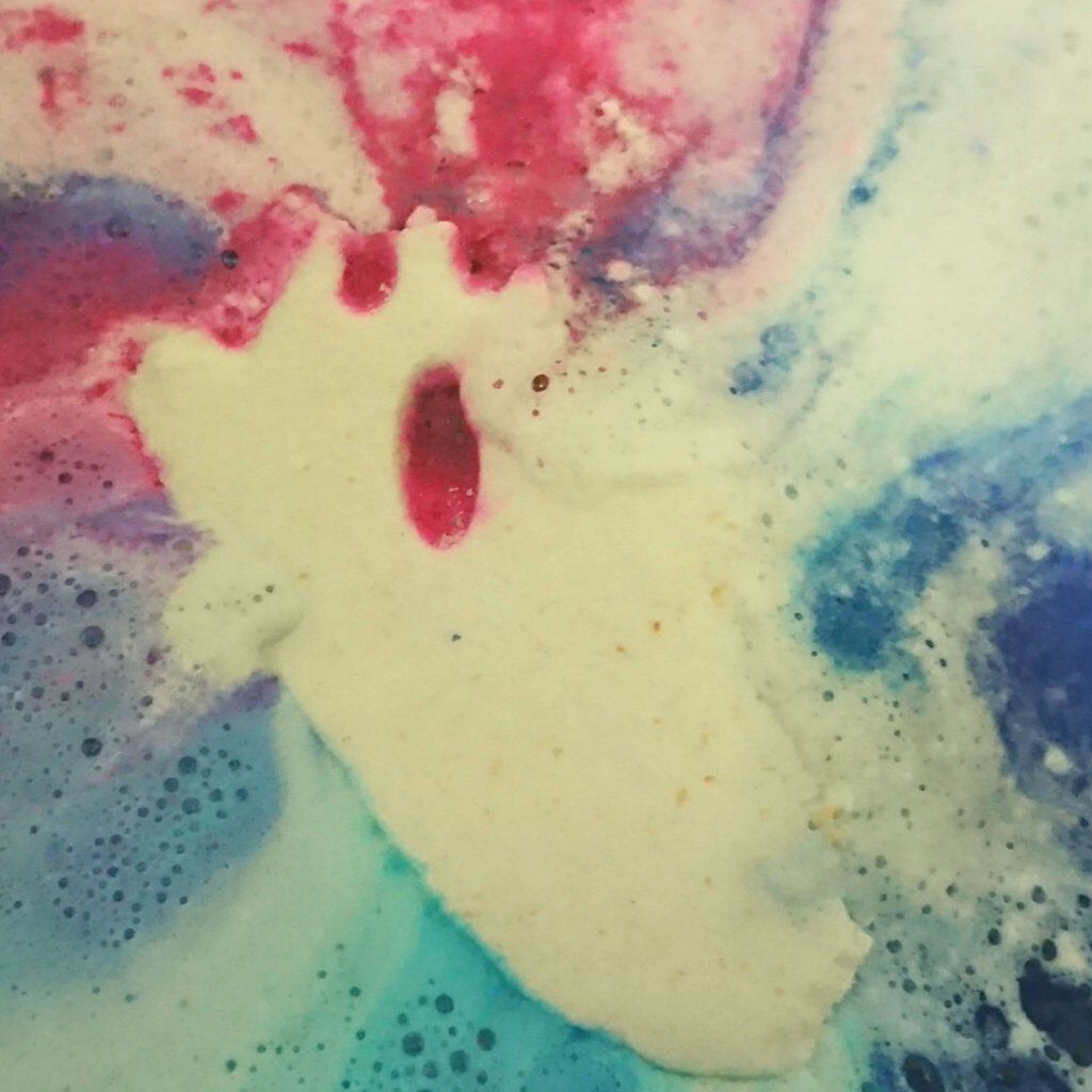 こちらはギンギラギンのコウモリの形のバスボムです🦇✨ 表面は真っ黒ですが、お湯に入れると中からピンクのバスボムが溶け出してきて、最終的に黒に近いダークパープルになります💜🖤 なんとも怪しげでハロウィン感満載です👻 が、よく見るとシルバーのラメがたくさん浮いていて宇宙空間のようにも見えます🪐🌌 香りは見た目とは裏腹に、甘い果実のようなフルーティーな香りでした🍊 怪しげなハロウィンの雰囲気がお好きな方におすすめなバスボムでした😈
