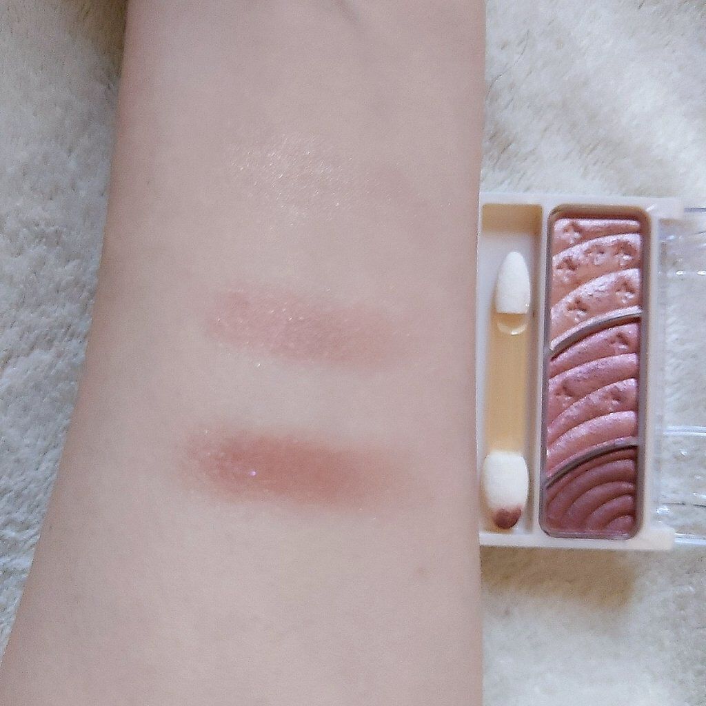 - 3色で簡単に明るく大きな目元に。 しっとり感触のアイシャドウ。 くすみを飛ばす明るさベース、ひとえ・奥二重の方でも幅広く塗れる肌なじみの良い中間色、 濃密高発色の締め色が目の輪郭を強調し大きな目元に。 微細パール配合でくすみを飛ばし、明るい目元へ。