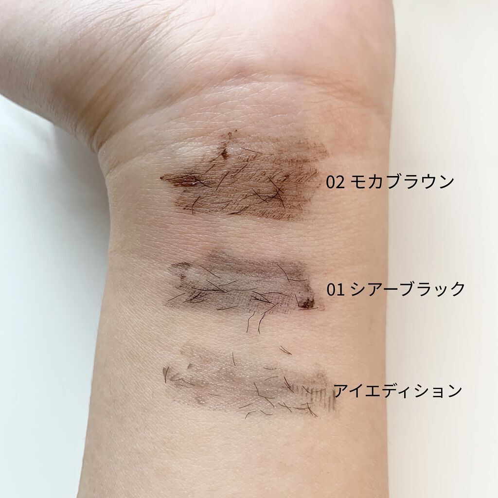 - <ウォームスタイル01 シアーブラック> 水添ポリイソブテン、パルミチン酸デキストリン、シクロペンタシロキサン、ジステアルジモニウムヘクトライト、トリメチルシロキシケイ酸、PEG-10ジメチコン、ポリエチレン、ナイロン-6、水、BG、テトライソステアリン酸スクロース、トリイソステアリン酸PEG-20水添ヒマシ油、アルギニン、ヒアルロン酸Na、コリアンダー果実エキス、ステビア葉/茎エキス、BHT、トコフェロール、エタノール、シリカ、トリエトキシカプリリルシラン、酸化鉄、カーボンブラック <ウォームスタイル02 モカブラウン> 水添ポリイソブテン、パルミチン酸デキストリン、ジステアルジモニウムヘクトライト、イソドデカン、トリメチルシロキシケイ酸、PEG-10ジメチコン、マイクロクリスタリンワックス、ポリエチレン、ナイロン-6、BG、水、テトライソステアリン酸スクロース、トリイソステアリン酸PEG-20水添ヒマシ油、ポリメチルシルセスキオキサン、アルギニン、ヒアルロン酸Na、トリ(トリメチルシロキシ)シリルプロピルカルバミド酸プルラン、タルク、トリエトキシカプリリルシラン、シリカ、BHT、トコフェロール、水酸化Al、テトラヒドロテトラメチルシクロテトラシロキサン、酸化スズ、テトラデセン、デヒドロ酢酸Na、酸化鉄、酸化チタン、マイカ、カーボンブラック