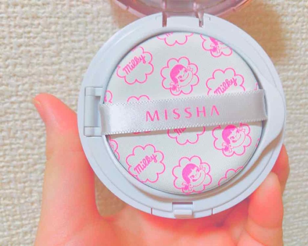 🥀ミシャMクッションベース(ミルキー)こちら数量限定で販売されているものなので今売られているか分からないです☹️ミシャのクッションファンデーションと不二家のミルキーがコラボしたクッションベースです✊ミルキーということでクッション部分も白く匂い...
