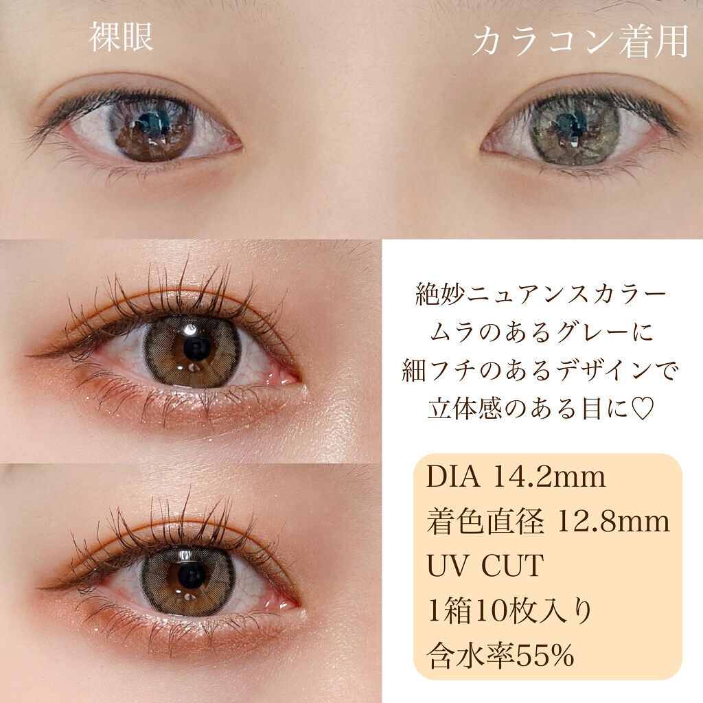 モラクのダズルグレー🩶 モラクはダズルベージュを使用したことがありますが、グレーもとても可愛いっ! 透明感メイクに合わせても、韓国風メイクにも相性抜群だと思います。 着色直径も大きすぎない自然な感じがとても気に入ってます。