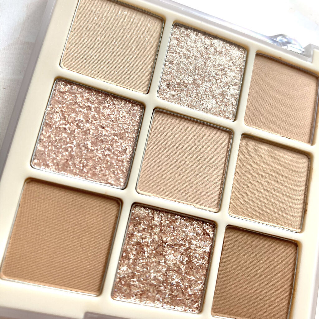 デイジークの人気の9色パレットです!マットカラーはふわっとした発色で粉質もほどよくしっとりしています。 07 Milk Latte の色は1番淡い色が揃ったパレットで、右下の1番濃いブラウン以外はとても薄い発色です。 かなりナチュラルに仕上がるのでデイリーメイクに使っています!