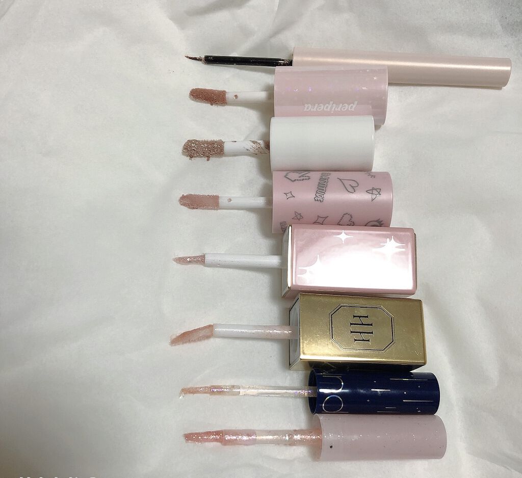 とにかくこだわるのはラメやグリッターの乗せ方で、目の中央にポイントを置きたいのでグリッターや大粒ラメは必ず中央に乗せるようにしています*୨୧⑅ 縦幅を出すために黒目上のまつ毛はとにかく真上にまとめて、あとは横に流しながらまとめます。 アイライナーはヒロインメイクの02ビターブラウンのカラーを使用 下ラインはキャンメイクのクリーミータッチライナー02ミディアムブラウンを使用していますが、こちらも落ちにくいため割と1発勝負です(笑) 最後にcipicipiのグリッターイルミネーションライナー01ピンクベージュを黒目上と黒目下だけに乗せて完成⸜ ♡ ⸝