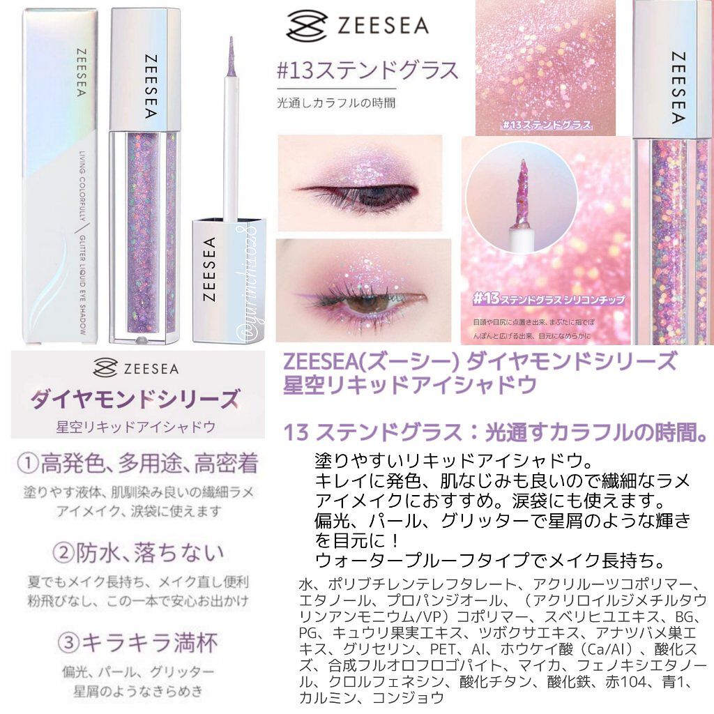 ZEESEA (ズーシー) ダイヤモンドシリーズ 星空リキッドアイシャドウ 13 ステンドグラス シリコンチップがかためで痛かった ホロを付けたりするにはいいんだけど