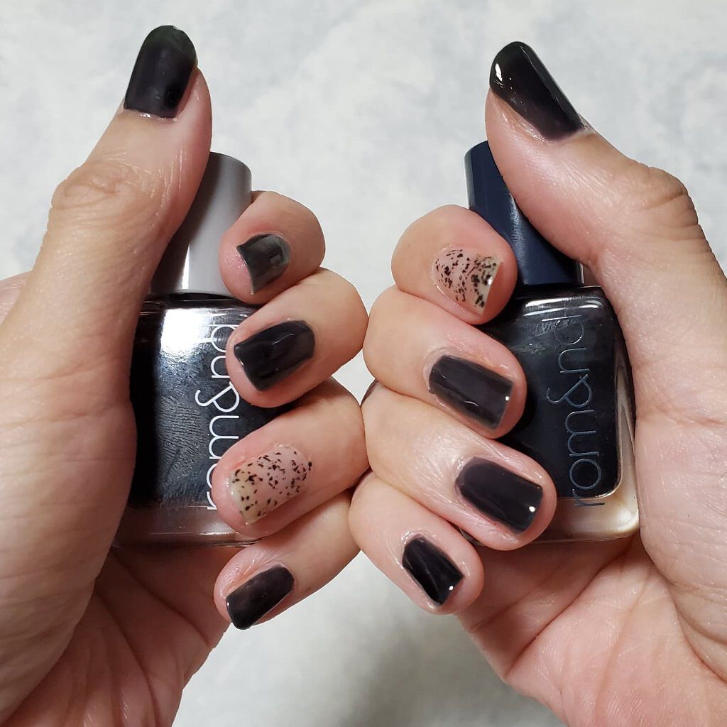 \\sheerglitter//rom&ndmoodpebblenailhardner03Ducatonailmine17この二つの組み合わせが大正解だったー🤍ポリッシュって本当にはげやすくて..💦一日中経つと先端からすこーし色が欠けちゃった...