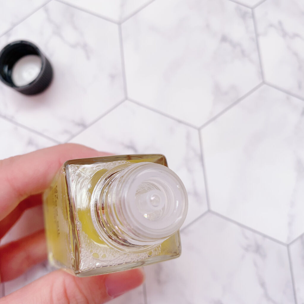 こちらは2層式のタイプで使う前に振るのが必須なタイプ🙆♀️ 3-4滴を手に取って顔に伸ばすと精油の良い香りが広がります💕 すっきりめの香りで リラックスできる🌟 こちらのオイル状美容液、オイル感はかなりあるのにあまりベタつきにくいタイプで不思議👀 オイル系スキンケア用品の中でもあまりもったり重たすぎず軽めのタイプだと思います🌈 これを塗るとお肌がもっちりしたような感じに✨✨ マッサージもできるのが嬉しいです🍒 これからの季節に大活躍しそうな商品です😍