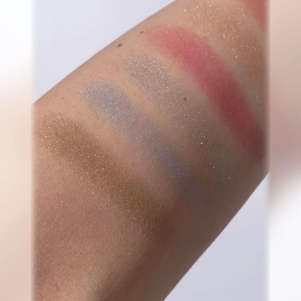 プロアイパレットより粉質が柔らかくしっとり感もあり伸びもよくブレンディングしやすかったです◎ 大粒ラメは密着度高めるために、クリーム加工のようにされてる為粉落ち、ラメ飛びしないでしっかりと瞼に密着✨ こちらのカラー01は、全体に黄味を含んだヌーディカラーでイエベ向け💛🧡 ラメを広範囲に使わなければ、オフィスでも使いやすい万能カラー❣️ しかもどのカラーも捨て色なし◎ 持ち運びも便利なサイズ感❣️ でも下段のカラーは割かしブルベの私でも使えるなと感じた😊