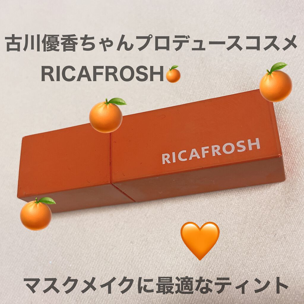 RICAFROSHジューシーリブティント01オランジェット07ビワマイト12スコーチドーナツ各¥1,848・リカフロッシュの手持ちのオレンジ系のリップを比べてみました🍊・01オランジェットは使いやすいオレンジカラーで3色塗り比べてみるとやや赤...