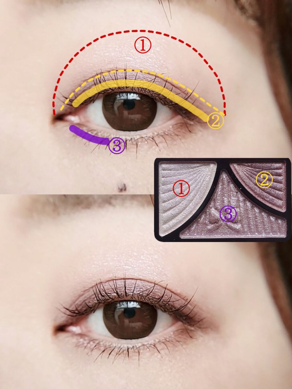 - パウダーなのにみずみずしい♥ 自然な立体感をつくりだす3色アイシャドウパレット 仕上げのコートで、ジューシー感&モチUP! メインカラー&ラインカラーはフィッティングオイル配合のしっとりパウダーで、 まぶたに吸いつくように溶け込み、ジューシーコートスフレで覆うことによって、 濡れたようにツヤめく愛されまぶたで透明感のある目元を演出します。