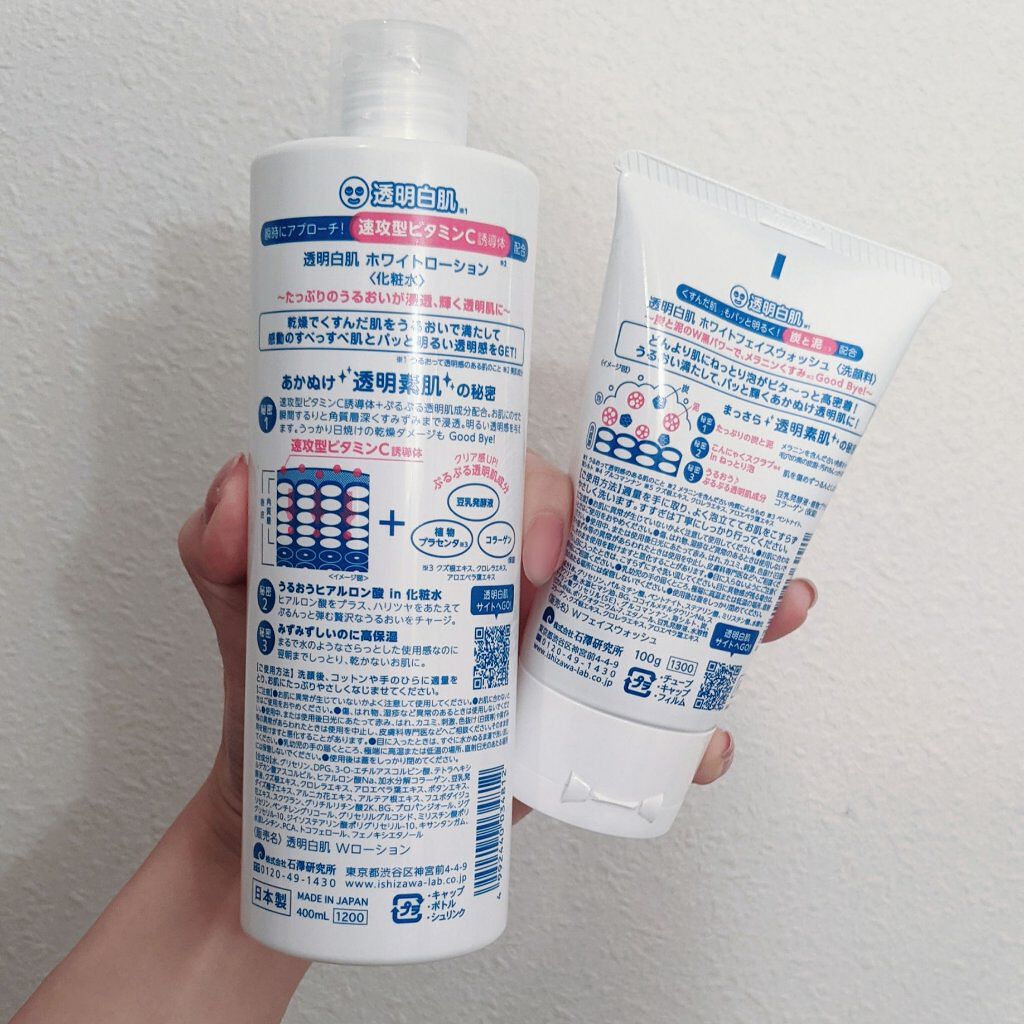 ホワイトフェイスウォッシュは泥と炭が入っているので黒色🤤 なのに泡立てるとモコモコの 白い泡になるの〜😍 すごくフワッフワ♡♡ ホワイトローションは 速攻型ビタミンC誘導体配合で 400mlのたっぷり容量✨ ローションパックはもちろん ボディクリームを塗る前の カラダにも使っています🥰 お肌がしっとりして とってもオススメの使い方💗💕