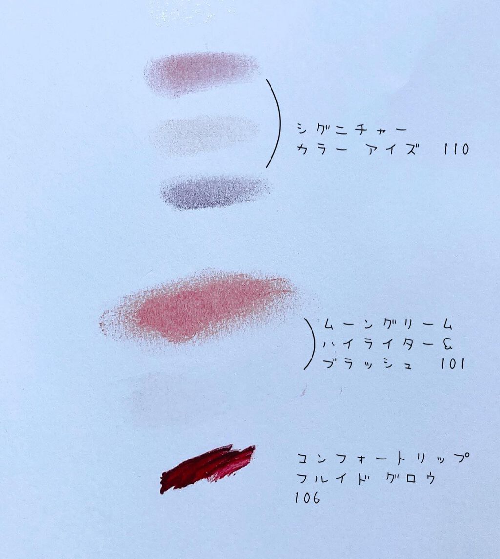 - 数量限定発売 ■2021 ホリデー メイクアップ キット A:雪景色に映える椿のような、凛とフェミニンな表情に。鮮やかな色合いに、澄んだ煌めきを添えて、上品な冬の美しさを表現。 ・シグニチャー カラー アイズ 110 花雪見 -HANAYUKIMI (6.2g) チップ・ブラシ付 ・ムーングリーム ハイライター&ブラッシュ 101 虹月 -NIJITSUKI (5.4g) ・コンフォート リップ フルイド グロウ 106 冬実 -TOUJITSU (3.3g) ミニサイズ ■2021 ホリデー メイクアップ キット B:冬の柑橘や樹の花のように、温かな表情に。旬のアースカラーに、華やぐ煌めきを添えて、寛いだ大人の美しさを表現。 ・シグニチャー カラー アイズ 111 月輝夜 -TSUKIKAGUYA (6.2g) チップ・ブラシ付 ・ムーングリーム ハイライター&ブラッシュ 102 月景 -TSUKIKAGE (5.4g) ・コンフォート リップ フルイド グロウ 107 蜜柿 -MITSUKAKI (3.3g) ミニサイズ