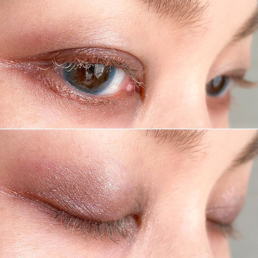 初MiMC‼︎ コスキチで眺めたりチョイッと触ったりしていたこれ。 実際目元に塗るとギャワイー😮💨✨🧡🤎 粉質しっとりで色のりがいい! 左側のイエローゴールドが思っていたより 瞼の上でしっかり発色して目元が明るくなる☺️ 暖色ゴールド&ブラウン系で 目元がくどくキツくなりがちなブルベですが ギラギラしていないからか、 テラコッタブラウンの柔らかい色あいなのか スッとした意志のある目になって好きです。 目元に優しい成分のみでできている 潤うアイシャドウ。