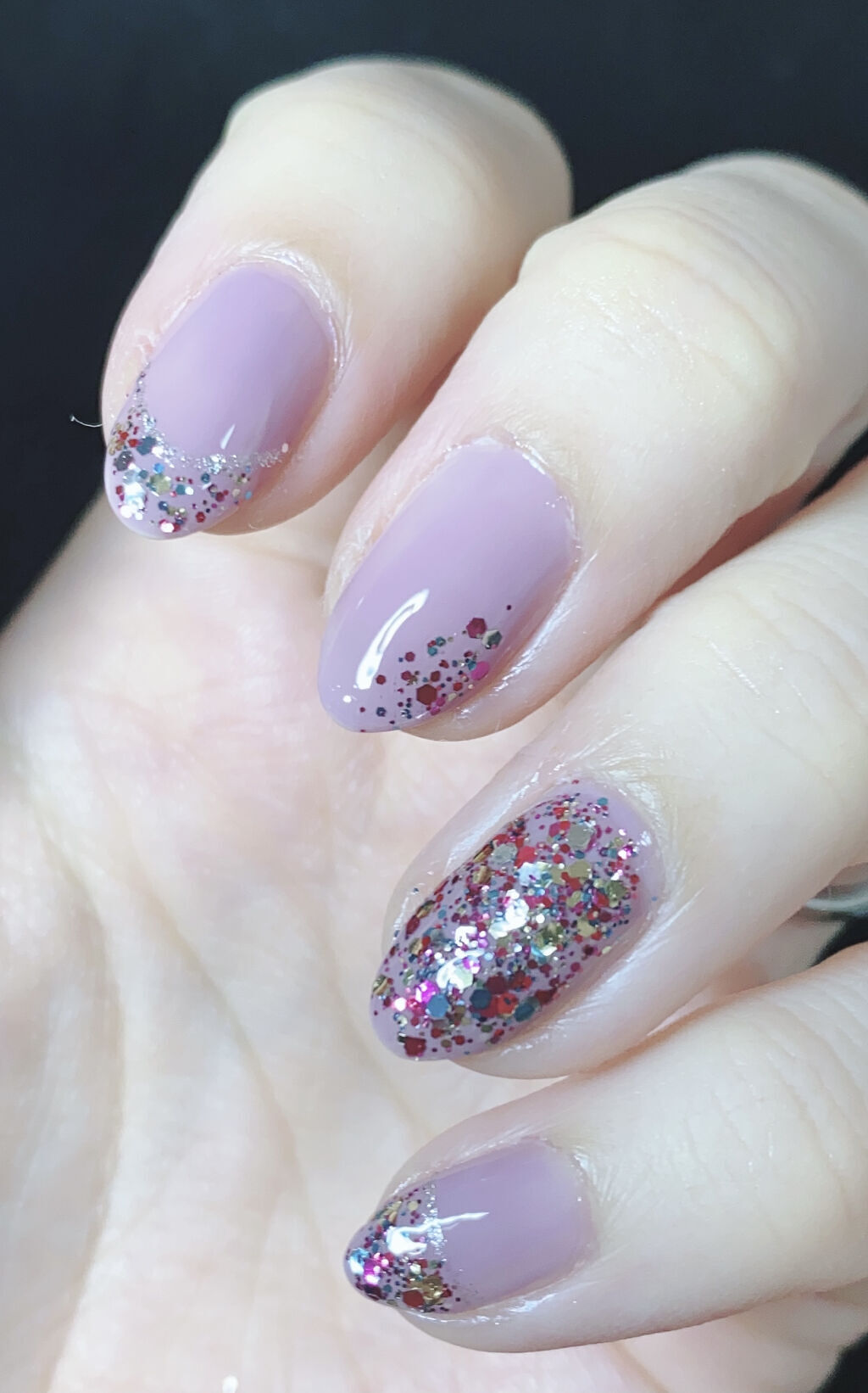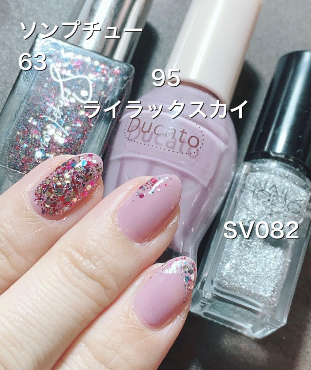 2021年のネイルデザインでバズってる、ガラスフレンチをやってみました💕とにかくキラキラが可愛い💎ファンデーションカラーズの透明感ある色と、純銀のホログラムの相性抜群でした😍✨是非参考にしてみて下さい💕①ラベンダーピンクを4度塗り❣️②フレン...