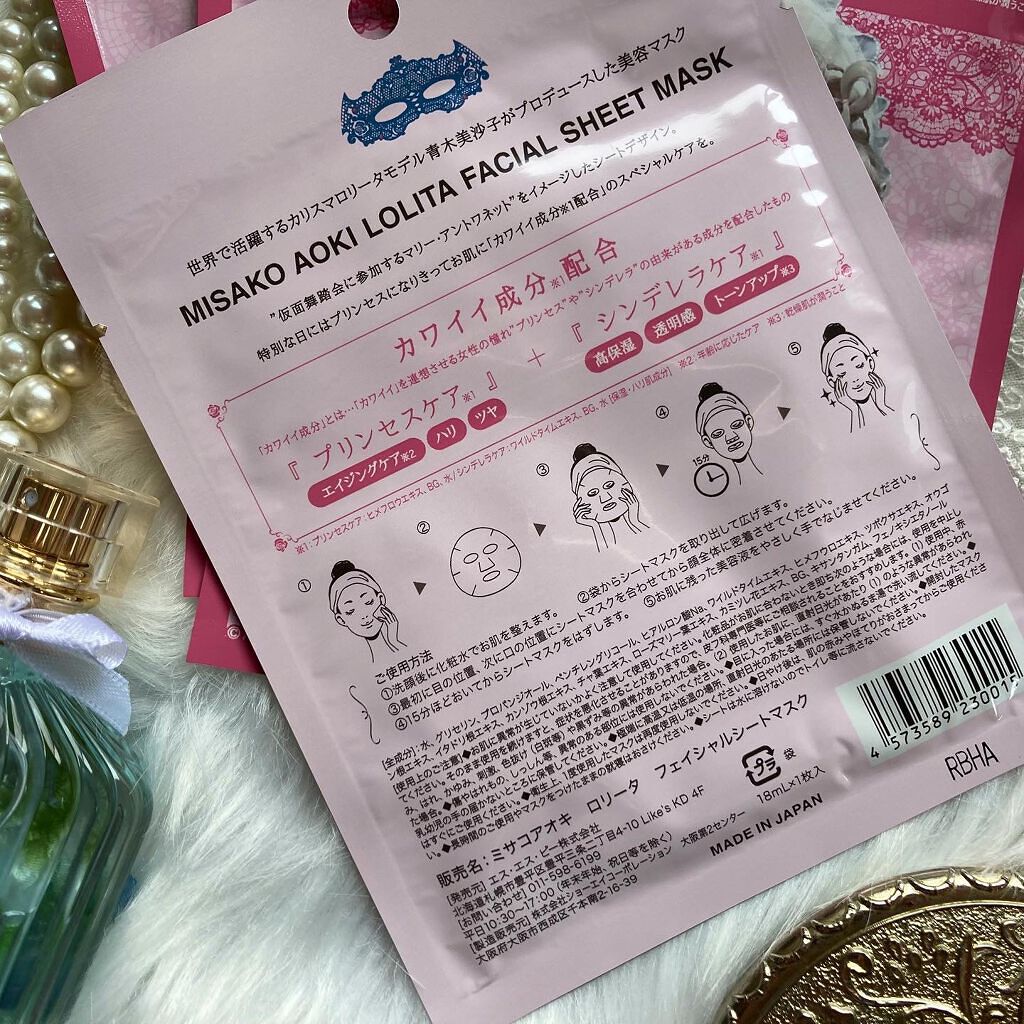 「いくつになっても好きなことを続けられる女性を応援したい」「いくいくつになっても可愛い笑顔を作りたい」という青木美沙子さんの想いから開発されたシートマスク。 インスタ映えするシートのデザインは、仮面舞踏会に参加するマリー・アントワネット柄⭐️ いくつになっても女子でいたい〜