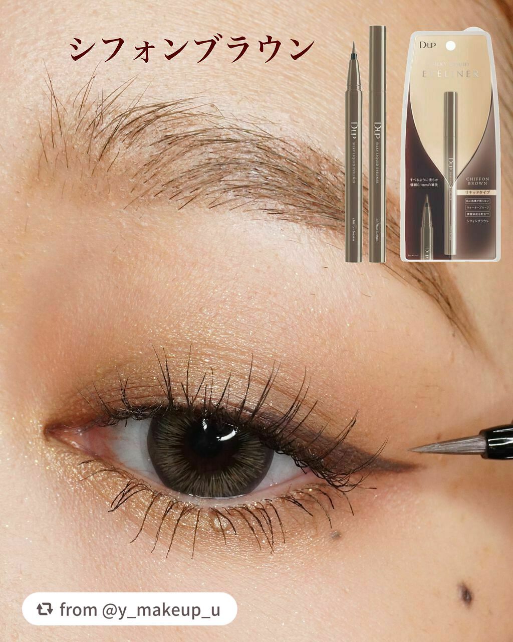 - 筆先までずっとなめらか、目尻で感動するリキッドアイライナー。 必要な量が肌にのる新設計で、まぶたの上をすべるような、滑らかな描き心地。しなやかでコシのある筆が、筆圧のコントロールを容易にし、太いラインも細いラインも思い通りに仕上げます。水、汗、涙に強いウォータープルーフタイプなのに、通常洗顔で簡単オフ。肌に色素が残らない顔料を使用。5種類の美容液成分を従来品の200%配合し、メイクしながら目元ケアまで。 ●ブラウンブラック ※2020年9月12日 バラエティショップ先行発売 ●漆黒ブラック ※2020年12月頃発売予定 ●ナチュラルブラウン ※2020年12月頃発売予定 ●シフォンブラウン 「毎日メイクに透明感と抜け感」 ブラウンでも、グレーでも、ベージュでもないニュアンスカラー。 自然な印影で素の目元を際立て、頑張りすぎない、ふんわりとした目元に。 ●アプリコットブラウン 「じゅわっと血色感。 肌に馴染むおしゃれカラー」 温かみのあるアプリコットがじゅわっと滲む血色感を目元に演出。 肌馴染みが良いので、カラーライナーに抵抗がある方もブラウンの延長線上で楽しめる、使いやすい色味です。 ”ちょっとオシャレ”な空気感を演出するカラー。 ●ピンクショコラ アイライナー 「ピンクが溶け込む濃厚ブラウン」 肌馴染みが良く、目元にじんわり血色感をプラス。 さりげなく女性らしさが加速するようなカラー。 ●ピスタチオラテ (2022年7月29日(金)発売) 「“目尻”に抜け感アクセント」 肌に馴染むのに映える絶妙なグリーン。 トレンドカラーに“くすみ”と“抜け感”をプラスしたまろやかな発色。 ●マスタードブラウン 「“イエロー”が揺れる、大人の洒落色」 (2022年7月29日(金)発売) まるで太陽のような暖かさを感じる新しいブラウン。 ほんのり感じるイエローでメイクが一気に垢抜ける稀有な色。 ●シフォンピンク(2023年2月10日発売) 「ふんわり柔らか"まろみピンク"」 甘くなりすぎない青みニュアンスで目元の透明感UP。 目元を引き締め、ピンクメイクにありがちな腫れぼったさを解消。 ●ミルクカプチーノ(2023年4月21日発売) まろやかな深みの“優しい締め色” どんなメイクにも合わせやすいカラー。 自然な陰影でさりげなく目幅を拡張します。 ●グレーカシミア(2023年10月1日発売) ブラウンがほんのり溶け込んだ、暖色グレー まろやかな発色で、パーソナルカラーを問わず肌に馴染む 目元の陰影になりすまし、抜け感と目力を欲張りに叶える ●ダークフィグ(2024年6月1日発売) するする”なめらか。描きやすいのに、落ちにくい。 クッキリ可愛いほの甘ダークブラウン ●ピーチモカ(2024年8月1日発売) ふわっと自然に盛れる“桃色ブラウン” ほんのり血色感で目元にうるみ感を演出 ●スターダストブラウン(2024年12月11日発売) キラッと繊細に輝く''星屑ブラウン'' 透け感のあるダークブラウンの色味とラメの輝きが、目元に艶のある立体感を演出 ●チャコールモカ(2025年4月10日発売) 目元を締める''深みグレージュ'' 黄みや赤みに偏りすぎない絶妙な色設計で、自然に目元を強調