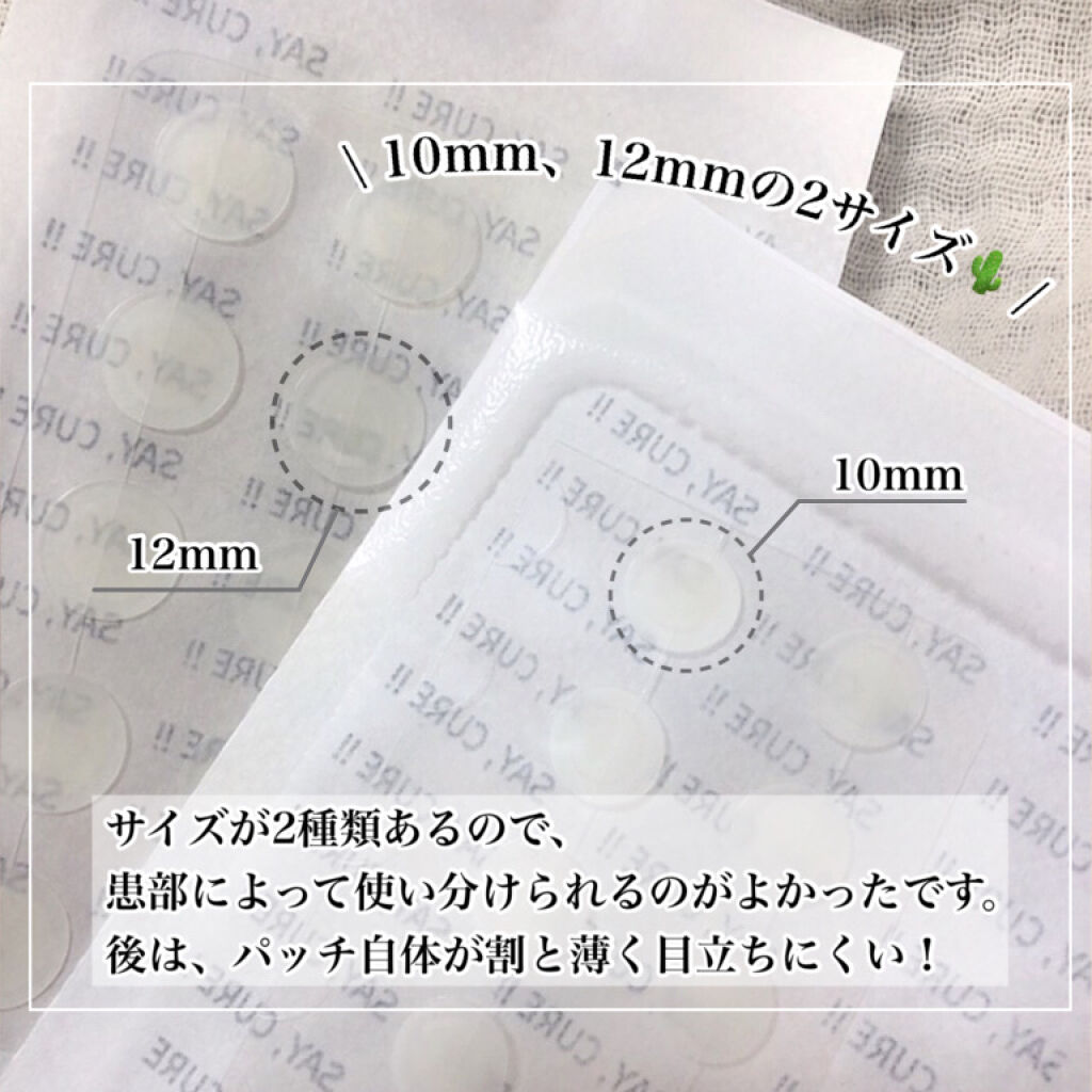- 周りを薄くしたバーべリング工法が適用され、自分の肌のようにナチュラルで目立ちにくいから、気にせずスポットケアが可能! 防水加工でパッチの上から洗顔やメイクをしても◎ [直径10mmタイプ]18枚×1シート [直径12mmタイプ]15枚×2シート