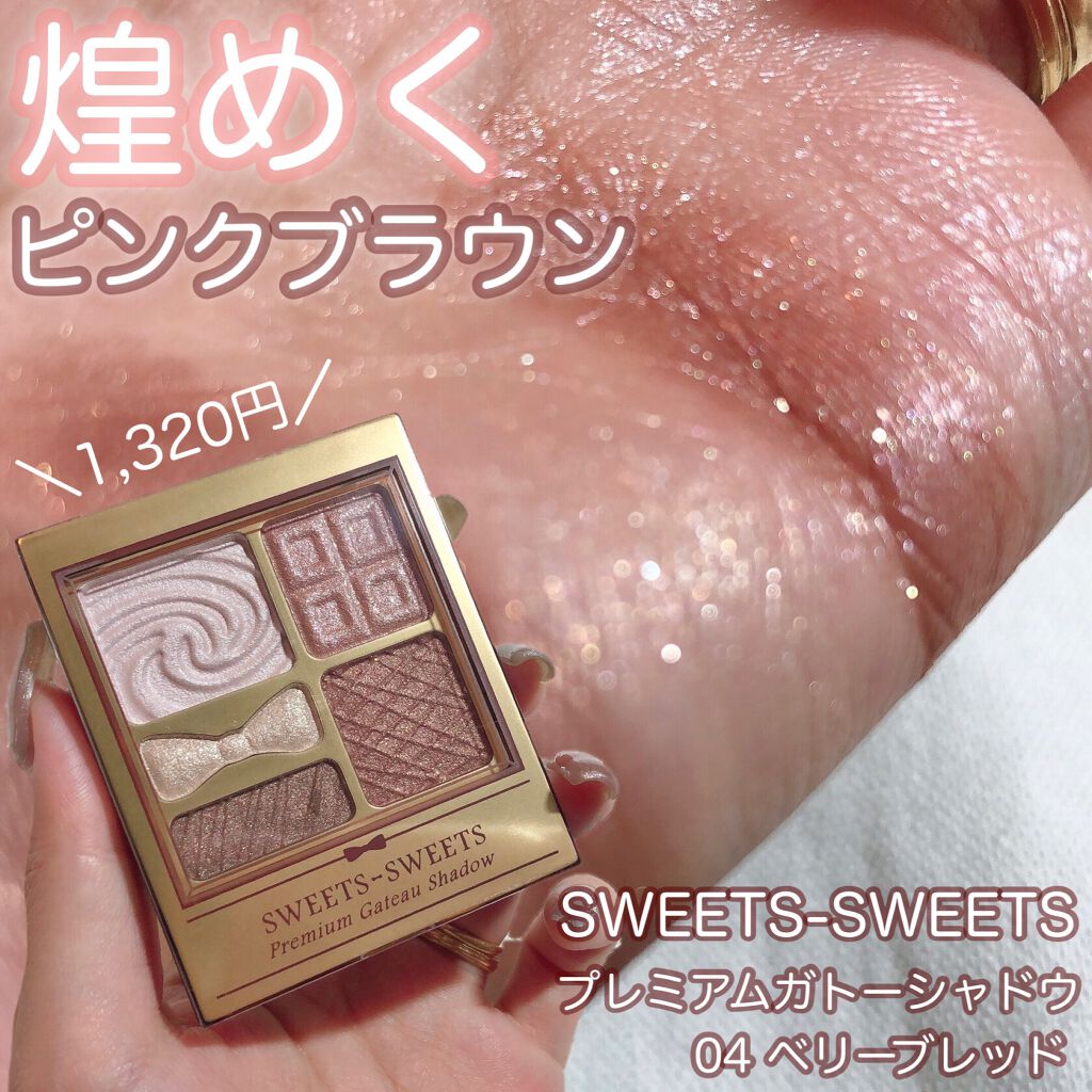 めちゃ可愛いの見つけた! 「スウィーツ スウィーツ」というブランドのアイシャドウ♡ もはやブランド名からかわいい…。 アイシャドウの名前は「プレミアムガトーシャドウ」ということは、深みチョコをイメージしているんだろうか? 私が使ったカラーの「04 ベリーブレッド」はこっくり深みのチョコカラーの締め色と、ココアチョコみたいな中間色がセットになっているよ。