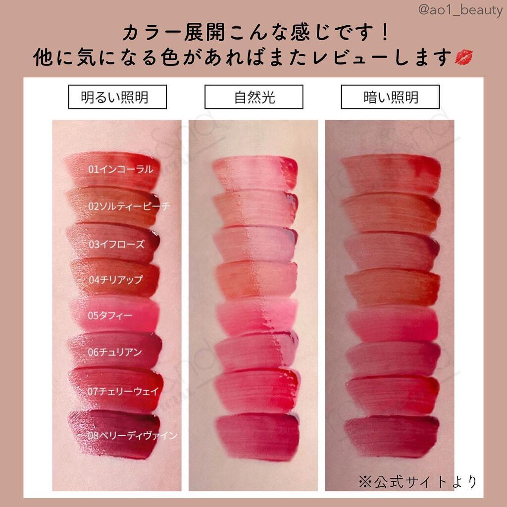 | 潤いが長続きします! 透け色ですが、重ねればパキッと仕上がるので調整しやすいティントだと思います!! | 詳細を見る |