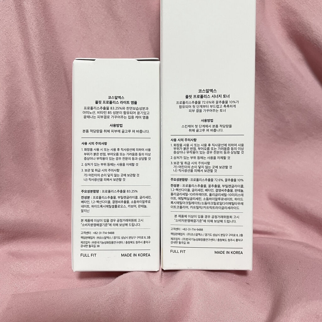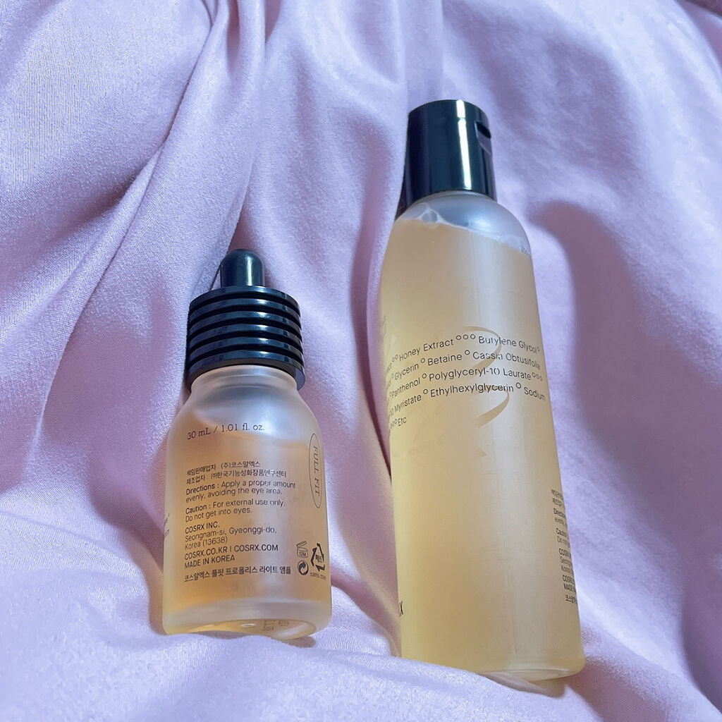 プロポリスエキスがトナー・・72.6% アンプル・・83%だそうです。 香りはほぼないです。めっちゃ使いやすい。 トナーはどっちかというとシャバシャバ系のテクスチャー。 特に化粧水はストック買いしたいと思うほどに気に入った💞