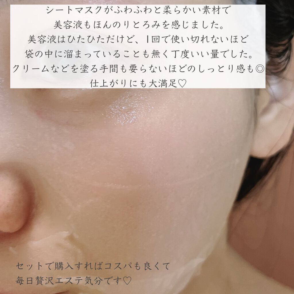 | うすーいシートなのに液がひたひた💓 ピタッと密着力もあり剥がれてきにくいから ながらケアできるのも嬉しいです♬ | 詳細を見る | ||