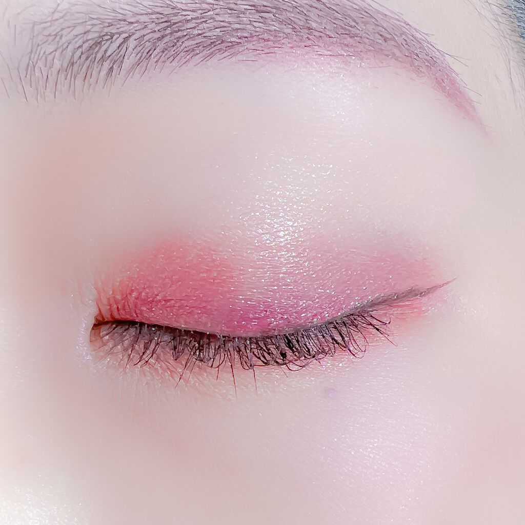 ベースに右上、目頭から黒目上に真ん中、黒目〜目尻に右下を、左上を目頭にくの字に塗ってもらいました✨ ピンクサクラよりもクールな感じで、目で見た色より私の肌では紫っぽく発色しました😍 上2つはラメはぎっしりでときめく💓 ブラウンメイクがとても苦手だけれどこれならブラウンメイク出来そう👌(かなり紫寄りですが) くすみ感は強いので苦手な方は厳しいかも…(特に真ん中) クールな印象になるので大人顔さん向けor大人顔になりたい方向けのイメージです✨
