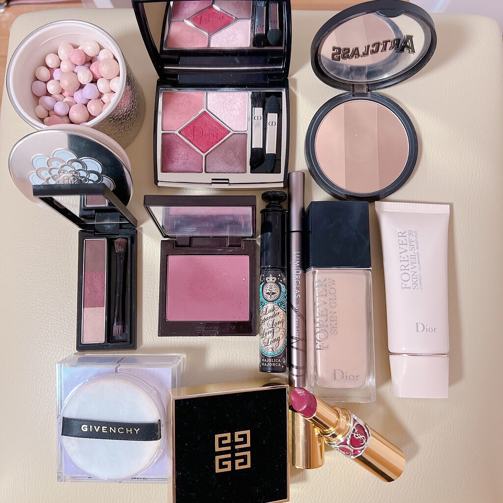 #今日のメイク♡Dior サンククルールクチュール 079ブラックボウ♡LUMIURGLAS Skill-lessLiner 07スモアグレージュブラックボウでグレー系メイク✨仕事なのでラメは控えめです♡左上のくすんだピンクが優れもの!メイン...