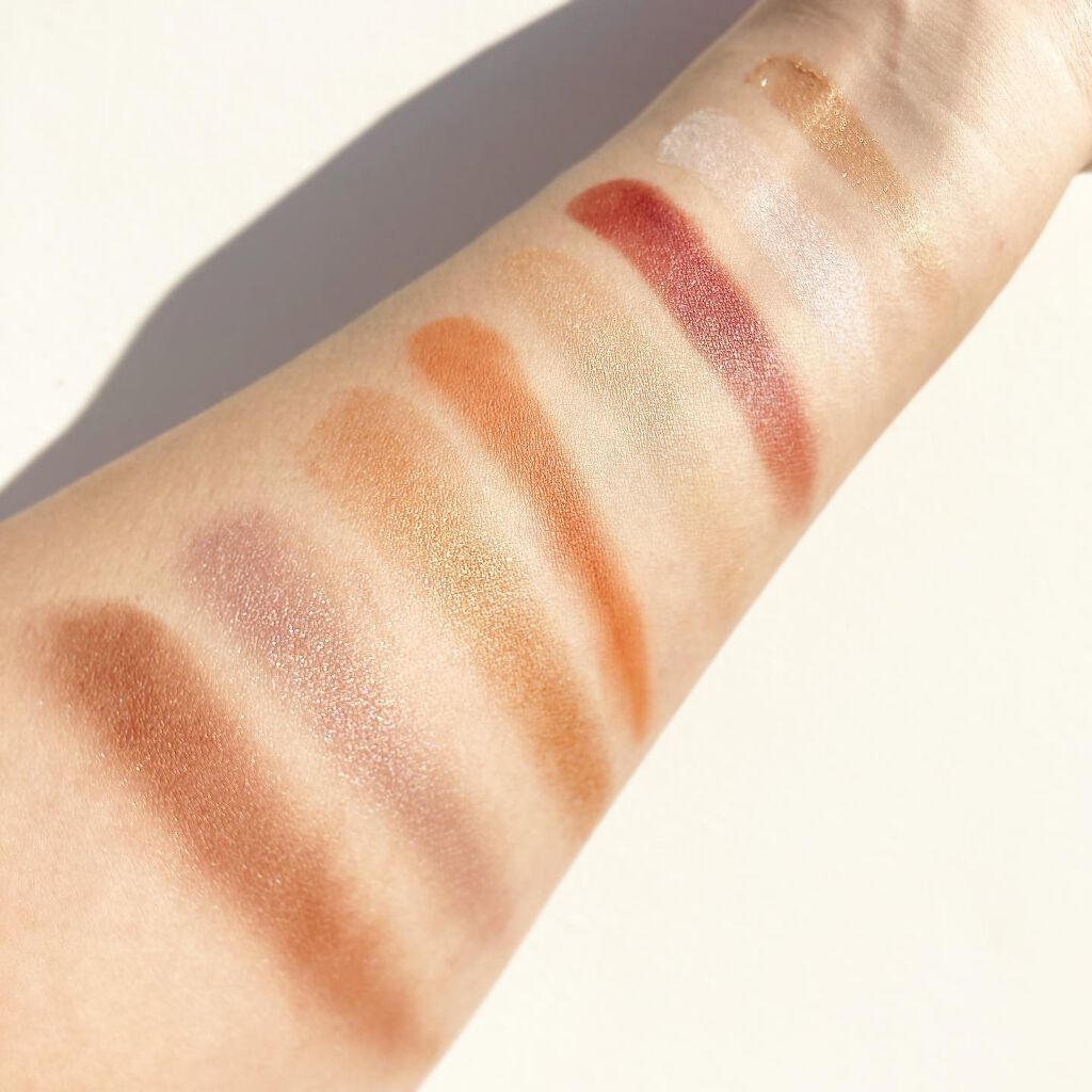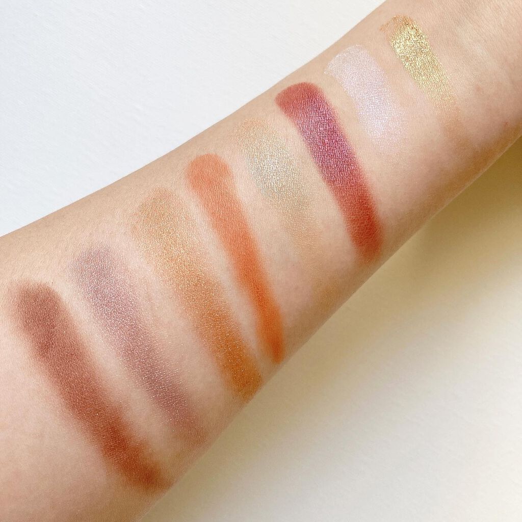 色味は似てるものもあるけど、ホリデー品の方が圧倒的にキラキラが多くてそのせいか粉も柔らかいような? 個人的にはブロンズカラーにやはりときめいていて、1番好きかな♡ アイライナーとしても使える黒のみがマットというのも良いね。 最後ローズウッドのスウォッチ雑になったわけじゃなくてちょっと粉が他と比べると出しにくくてそうなっちゃいました、がローズウッドもマット多め、大人っぽくて可愛いです。