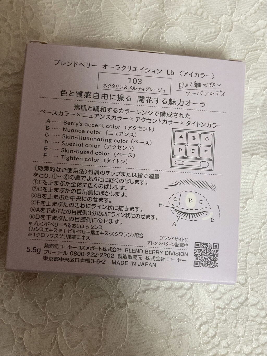 左下のベリーのようなピンクを二重幅まで。その上の、左上のコーラルをまぶたに。 真ん中の上段ラメをまぶたに足し右下のカーキを目尻に使用しました。 涙袋には、真ん中の下段を使用して 涙袋影には、右上のグレーを使用して全色しっかり使いました♫ BLEND BERRYはやっぱり可愛い❤️