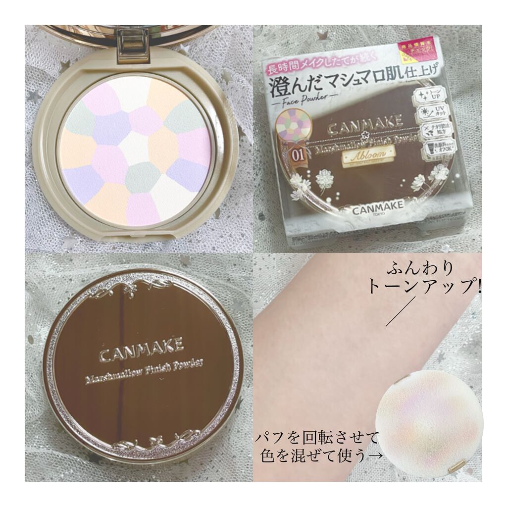 - 長時間崩れにくい 澄んだマシュマロ肌仕上げのフィニッシュパウダー マシュマロフィニッシュパウダーのふわふわマットな仕上がりはそのまま、 ワントーンアップした透明美肌に仕上がるAbloomタイプ。 5色を混ぜて使うことで、顔色補正効果&トーンアップ! 濁りのない澄んだ肌が長時間続きます。 汗・皮脂崩れ・乾燥に強く、長時間メイク崩れを防止します。