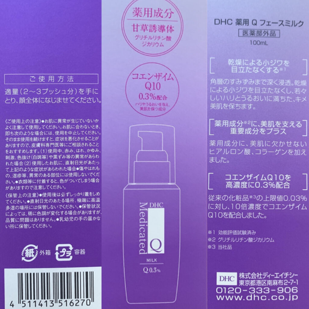 コエンザイムQ10など多彩な美肌サポート成分を配合した、人気のDHC薬用Qシリーズローション、ミルク、クリームライン使いさせていただいてます。DHC薬用Qローション紫外線ダメージや乾燥といった肌トラブルをまとめてケアする薬用化粧水。サラッとし...