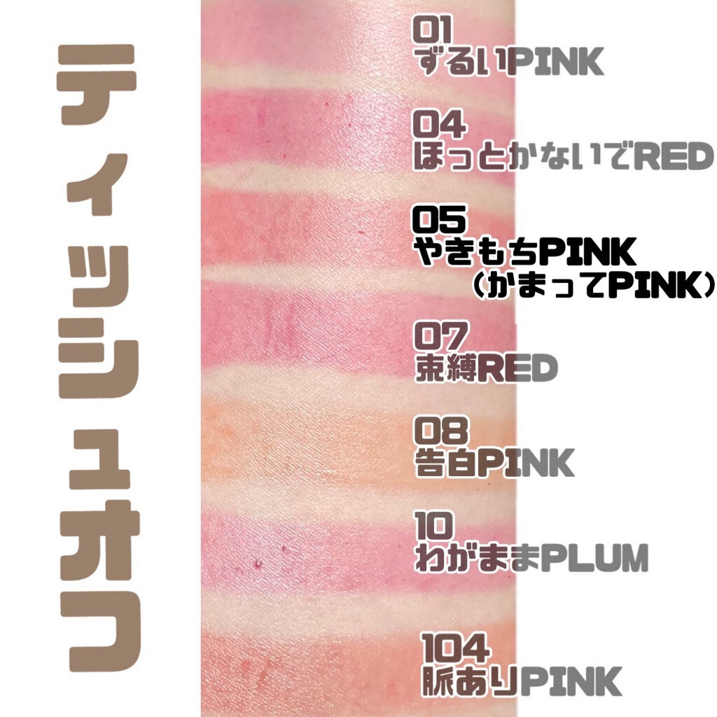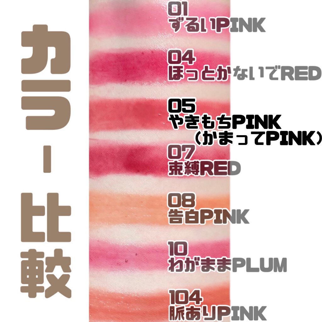 🩷BIDOLつやぷるリップ05RかまってPINK🩷体温でとろけるようなテクスチャーで伸びが良いです😊保湿力も高いので乾燥しにくく、多少荒れている唇に塗っても綺麗に仕上がります🙌🏻色持ちはそこそこで飲食すると落ちやすいです💦カラーは青みがあるく...