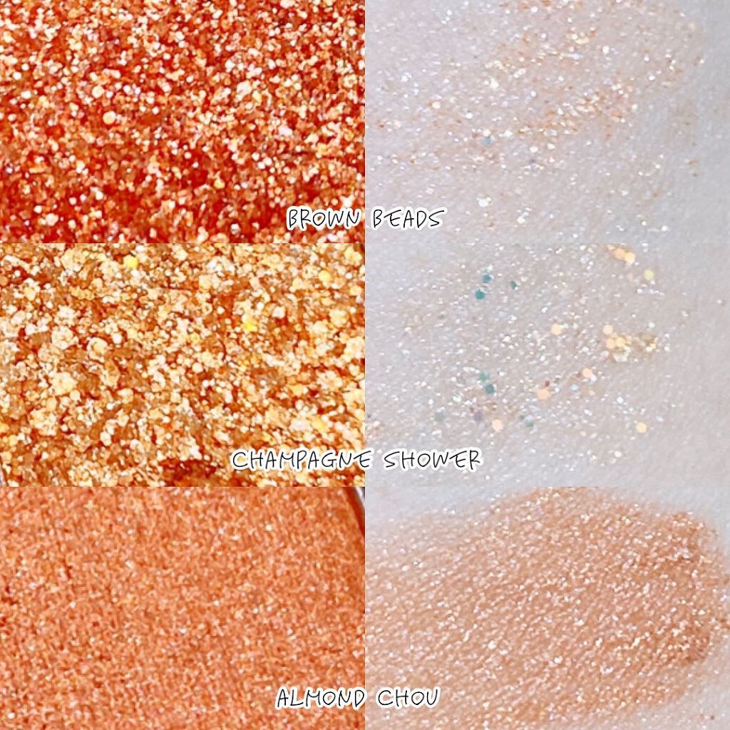 URGLAMオーロラアイシャドウ01オレンジのようなブラウンのようなベースカラーに、グリーンっぽいラメかな?02オレンジのようなブラウンのようなベースカラーに、オレンジ系のラメかな?03ブラウンっぽいベースカラーに、ブルー・グリーン...