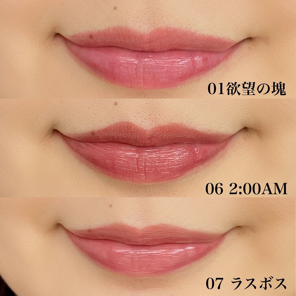 - <01 欲望の塊> テトライソステアリン酸ジペンタエリスリチル、トリ(カプリル酸/カプリン酸)グリセリル、オクチルドデカノール、ラウロイルグルタミン酸ジ(フィトステリル/オクチルドデシル)、ビスアルキル(C16-18)グリセリルウンデシルジメチコン、イソノナン酸イソトリデシル、水添ポリイソブテン、ラウロイルグルタミン酸ジ(オクチルドデシル/フィトステリル/ベヘニル)、パラフィン、合成ワックス、ダイマージリノール酸(フィトステリル/イソステアリル/セチル/ステアリル/ベヘニル)、マイクロクリスタリンワックス、水添マイクロクリスタリンワックス、ヒドロキシステアリン酸エチルヘキシル、トコフェロール、ホホバ種子油、オリーブ果実油、アーモンド油、(エチレン/プロピレン)コポリマー、ポリエチレン、ジメチコン、(+/-)(チタン/酸化チタン)焼結物、マイカ、ラウロイルアスパラギン酸Na、ラウロイルリシン、塩化亜鉛、酸化チタン、酸化鉄、水酸化Al、硫酸Ba、トリイソステアリン酸イソプロピルチタン、酸化スズ、ホウケイ酸(Ca/Al)、合成フルオロフロゴパイト、黄4、黄5、赤104(1)、赤201、赤202 <02 ピンクバナナ> テトライソステアリン酸ジペンタエリスリチル、トリ(カプリル酸/カプリン酸)グリセリル、オクチルドデカノール、ラウロイルグルタミン酸ジ(フィトステリル/オクチルドデシル)、ビスアルキル(C16-18)グリセリルウンデシルジメチコン、イソノナン酸イソトリデシル、水添ポリイソブテン、ラウロイルグルタミン酸ジ(オクチルドデシル/フィトステリル/ベヘニル)、パラフィン、合成ワックス、ダイマージリノール酸(フィトステリル/イソステアリル/セチル/ステアリル/ベヘニル)、マイクロクリスタリンワックス、水添マイクロクリスタリンワックス、ヒドロキシステアリン酸エチルヘキシル、トコフェロール、ホホバ種子油、オリーブ果実油、アーモンド油、(エチレン/プロピレン)コポリマー、ポリエチレン、ジメチコン、(+/-)(チタン/酸化チタン)焼結物、マイカ、ラウロイルアスパラギン酸Na、ラウロイルリシン、塩化亜鉛、酸化チタン、酸化鉄、水酸化Al、硫酸Ba、トリイソステアリン酸イソプロピルチタン、酸化スズ、ホウケイ酸(Ca/Al)、合成フルオロフロゴパイト、黄4、黄5、赤104(1)、赤201、赤202 <03 陽炎> テトライソステアリン酸ジペンタエリスリチル、トリ(カプリル酸/カプリン酸)グリセリル、オクチルドデカノール、ラウロイルグルタミン酸ジ(フィトステリル/オクチルドデシル)、ビスアルキル(C16-18)グリセリルウンデシルジメチコン、イソノナン酸イソトリデシル、水添ポリイソブテン、ラウロイルグルタミン酸ジ(オクチルドデシル/フィトステリル/ベヘニル)、パラフィン、合成ワックス、ダイマージリノール酸(フィトステリル/イソステアリル/セチル/ステアリル/ベヘニル)、マイクロクリスタリンワックス、水添マイクロクリスタリンワックス、ヒドロキシステアリン酸エチルヘキシル、トコフェロール、ホホバ種子油、オリーブ果実油、アーモンド油、(エチレン/プロピレン)コポリマー、ポリエチレン、ジメチコン、(+/-)(チタン/酸化チタン)焼結物、マイカ、ラウロイルアスパラギン酸Na、ラウロイルリシン、塩化亜鉛、酸化チタン、酸化鉄、水酸化Al、硫酸Ba、トリイソステアリン酸イソプロピルチタン、酸化スズ、ホウケイ酸(Ca/Al)、合成フルオロフロゴパイト、黄4、黄5、赤104(1)、赤201、赤202 <04 パンプキンワイン> テトライソステアリン酸ジペンタエリスリチル、トリ(カプリル酸/カプリン酸)グリセリル、オクチルドデカノール、ラウロイルグルタミン酸ジ(フィトステリル/オクチルドデシル)、ビスアルキル(C16-18)グリセリルウンデシルジメチコン、イソノナン酸イソトリデシル、水添ポリイソブテン、ラウロイルグルタミン酸ジ(オクチルドデシル/フィトステリル/ベヘニル)、パラフィン、合成ワックス、ダイマージリノール酸(フィトステリル/イソステアリル/セチル/ステアリル/ベヘニル)、マイクロクリスタリンワックス、水添マイクロクリスタリンワックス、ヒドロキシステアリン酸エチルヘキシル、トコフェロール、ホホバ種子油、オリーブ果実油、アーモンド油、(エチレン/プロピレン)コポリマー、ポリエチレン、ジメチコン、(+/-)(チタン/酸化チタン)焼結物、マイカ、ラウロイルアスパラギン酸Na、ラウロイルリシン、塩化亜鉛、酸化チタン、酸化鉄、水酸化Al、硫酸Ba、トリイソステアリン酸イソプロピルチタン、酸化スズ、ホウケイ酸(Ca/Al)、合成フルオロフロゴパイト、黄4、黄5、赤104(1)、赤201、赤202 <05 ダークフィグ> テトライソステアリン酸ジペンタエリスリチル、トリ(カプリル酸/カプリン酸)グリセリル、オクチルドデカノール、ラウロイルグルタミン酸ジ(フィトステリル/オクチルドデシル)、ビスアルキル(C16-18)グリセリルウンデシルジメチコン、イソノナン酸イソトリデシル、水添ポリイソブテン、ラウロイルグルタミン酸ジ(オクチルドデシル/フィトステリル/ベヘニル)、