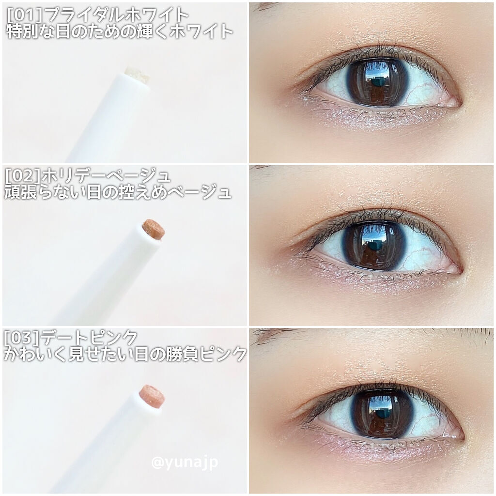 - とろける描き心地の極細ラメシャドウが限定新登場★ 下まぶたメイクを楽しむ✨ ピンポイントでラメラインを入れられる極細ラメシャドウ! 2mmの細芯で小回りが利くので細いラインが簡単に描ける♪ 柔らか芯なので、肌当たりはとても優しく、アイシャドウチップでのせるよりも手軽にラメラインが描けるアイテムです! 1度描きでしっかりキラキラする高輝度ラメで、重ね描きは不要* 1度乾いて密着すればとにかく落ちにくい✨水・汗・涙に強いウォータープルーフ処方!描きたての仕上がりを長時間キープ★