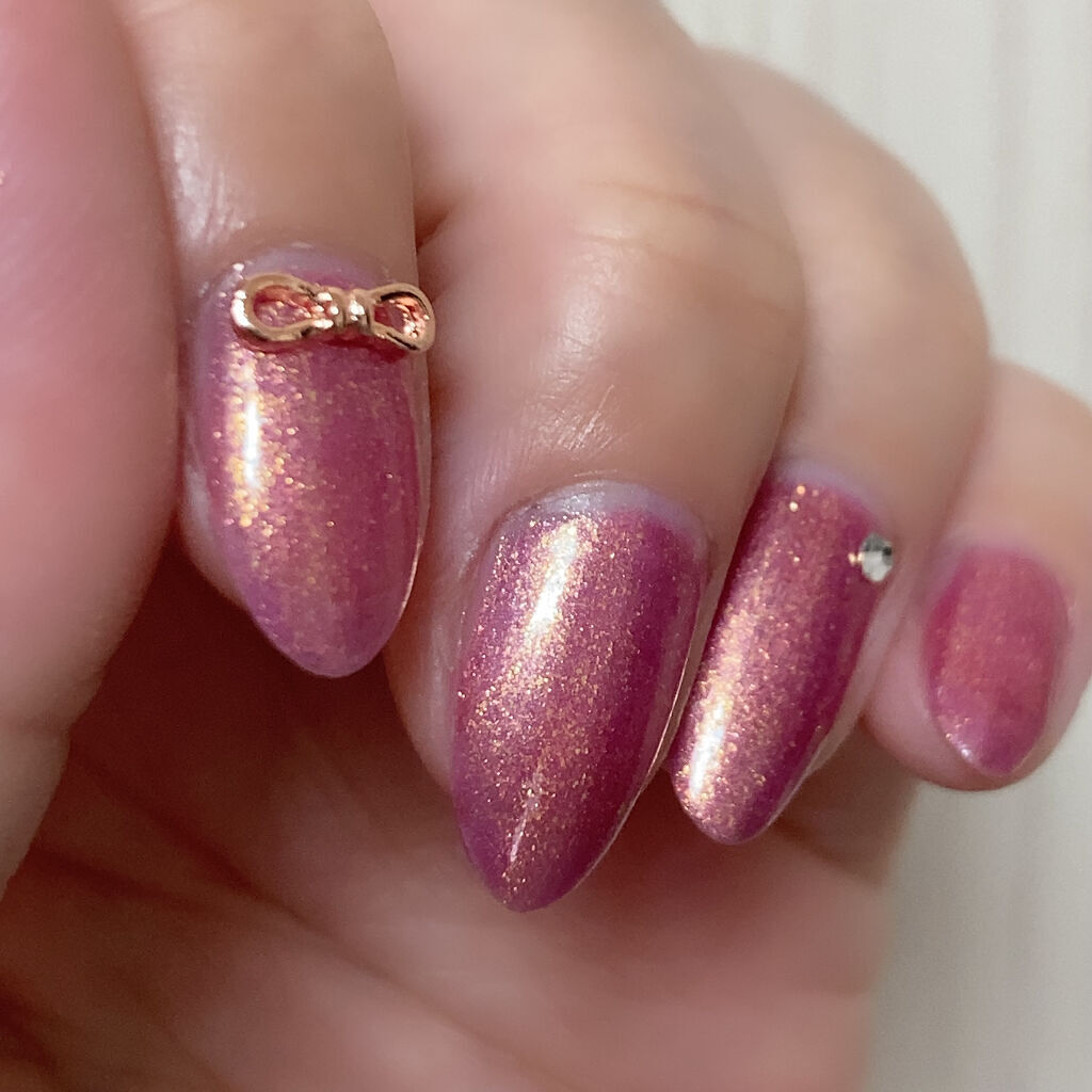 まずベースを塗ってから トップコートを塗り (使用してるものはこれ一本でOK) トップコートを塗ったら半乾きの状態で 指or使い捨てアイシャドウチップ等使用して アイシャドウをポンポンと塗ります。 塗り終えたら更にトップコートを塗って 半乾きの状態でアイシャドウを… アイシャドウ塗っただけだと、ん? ってなるけど、上からトップコート重ねると パールやラメやツヤ感が出て綺麗✦ฺ