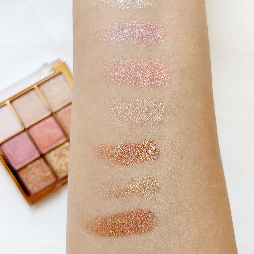 テクスチャーはクリームアイシャドウなので体温でジュワッと溶ける感じなのですが他社のクリームアイシャドウよりも柔らかめだなと感じました。 手で取ると少量でもすごく綺麗なラメ感が出るのでとにかくめちゃくちゃ可愛いです。 お肌に乗せた時の色と仕上がりにめちゃくちゃテンションが上がりました!ほんっっとに可愛いオレンジブラウン! 薄くのばして重ねてもあまりムラが気にならないのでパパッとメイクするときにも使えるしこれ単色でもすごく可愛い。 クリームアイシャドウの中ではまぶたの溝に溜まる量も少なめに感じました。もちろんほんのり溜まっちゃうんですがカラーのおかげもありあまり気にならないかな?という感じ。 カラーの可愛さに本当にびっくりしました。そしてクリームアイシャドウとしてもしっとり感と密着感のバランスが程よくてすごく使いやすく感じています。