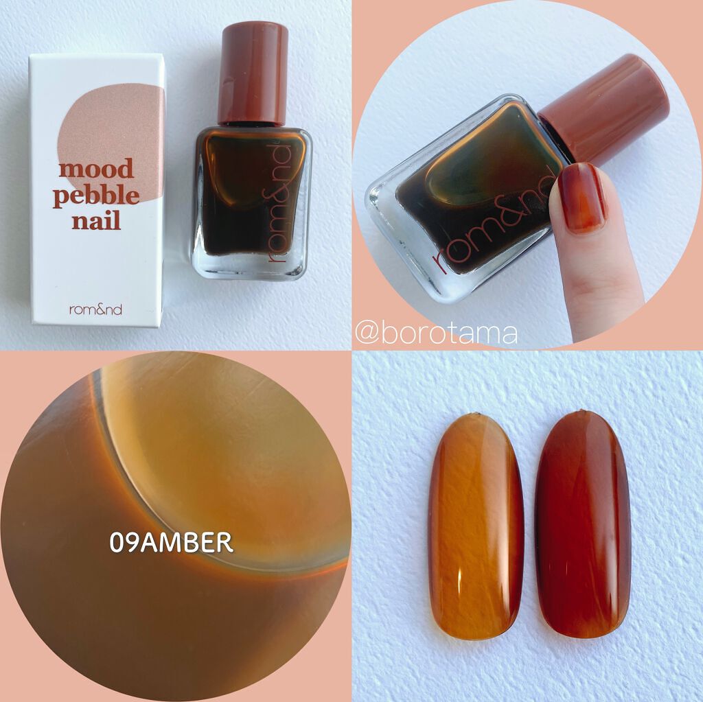 ツヤツヤな小石みたいな仕上がりが特長です.ᐟ このネイル自体、販売終了みたいで悲しみの極み 09 AMBERは濃くて深いキャラメルブラウン。秋冬にピッタリなカラーです🍁 遊ぶのが楽しい 色ムラまでも愛おしい 似た色探したい