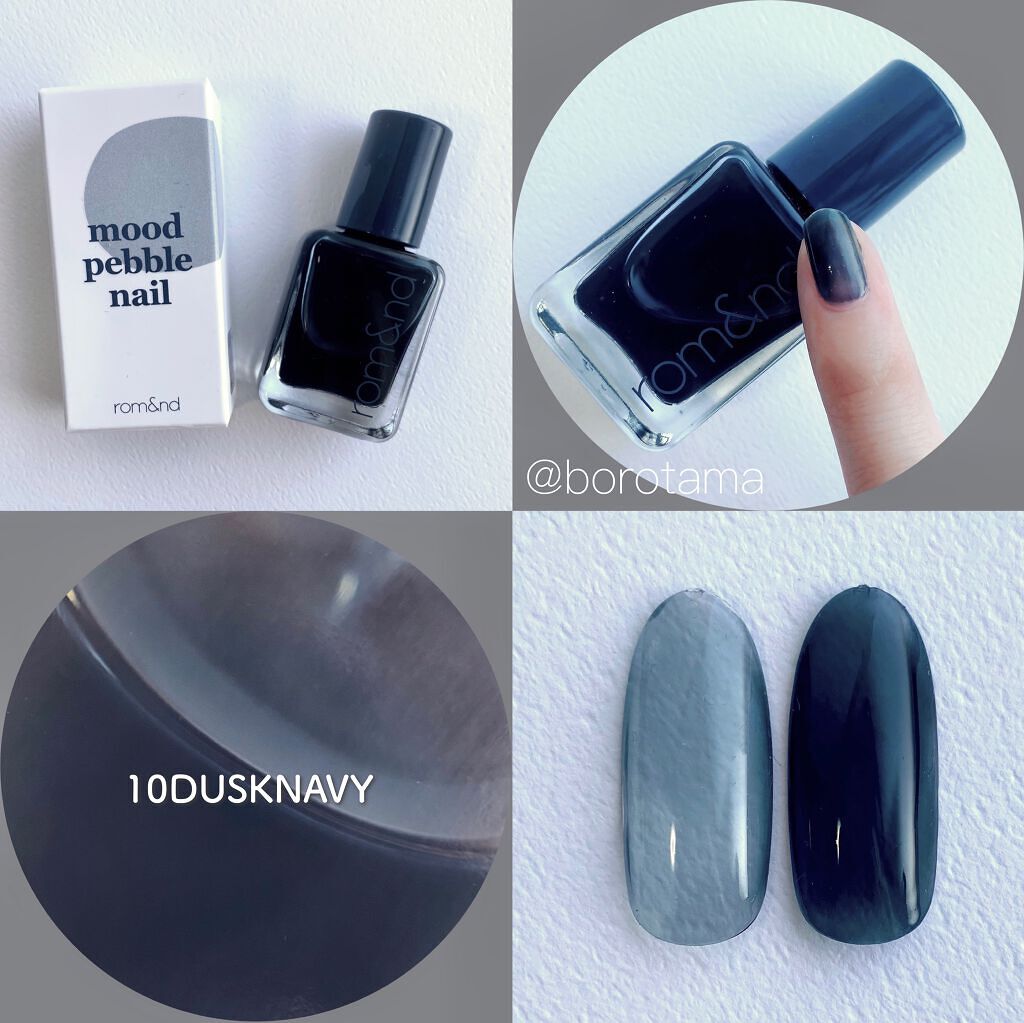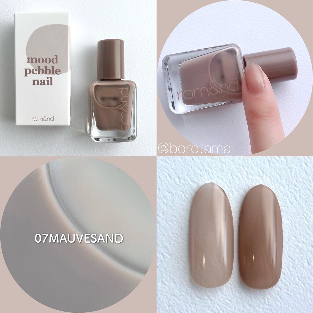 - 指先に玉石のような、ならかな光沢をとどめる。塗った瞬間から綺麗なツヤと光沢を維持し、重ねて塗っても透き通ったカラー感を鮮やかにとどめる、素早い乾燥力のナチュラルカラーネイル。「ロムアンド」の次世代型ネイルです。
