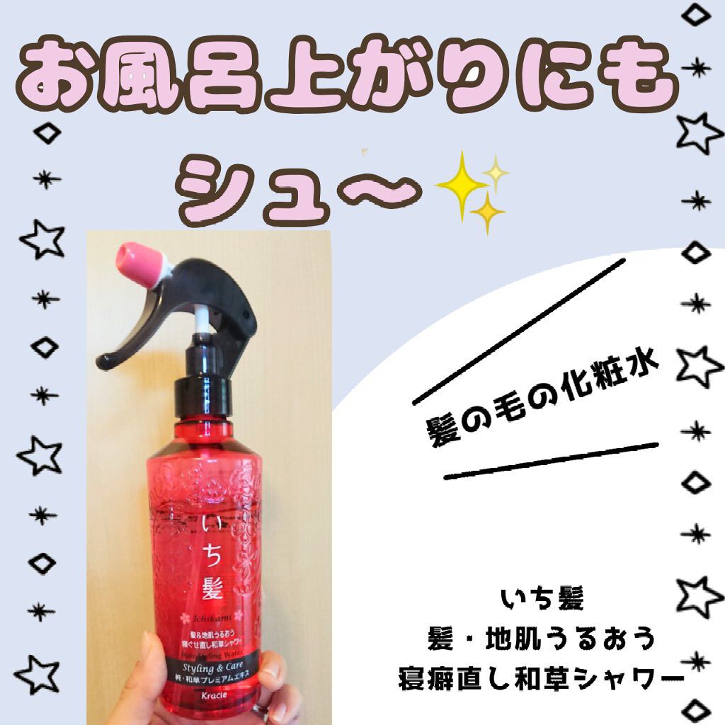 朝も夜もシュッと💦いち髪和草シャワー🌸いそがしい朝に寝癖なおしとして🔅絡まってる髪の毛にシュッとかけると櫛が通りやすくなり助かってます🙌ミストの粒子もちょうどいい✨️甘酸っぱいようなお花の匂いがきつすぎずふわっと香ります💐夜はドライヤーによる...