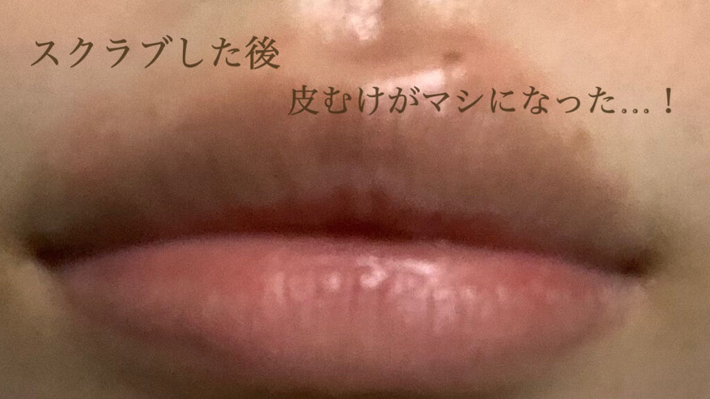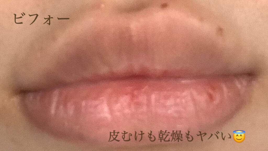 ビフォーから最後の写真まで、24時間の出来事です! 私が使っているのは、・キャンメイク プランプリップケアスクラブ(過去にレビュー済み)・LANEIGE リップ スリーピングマスクです! スクラブで皮むけを処理し、リップマスクでしっかり保湿するイメージです。 リップマスク単体でも良くなりますが、スクラブ併用の方が早く良くなります。 スクラブをティッシュで拭き取るのは出てきた皮を取るためです。スクラブ自体をふきとるわけではありません。(皮は無理にひっぱって取らないでください。 拭き取って自然に取れたものだけでOKです)