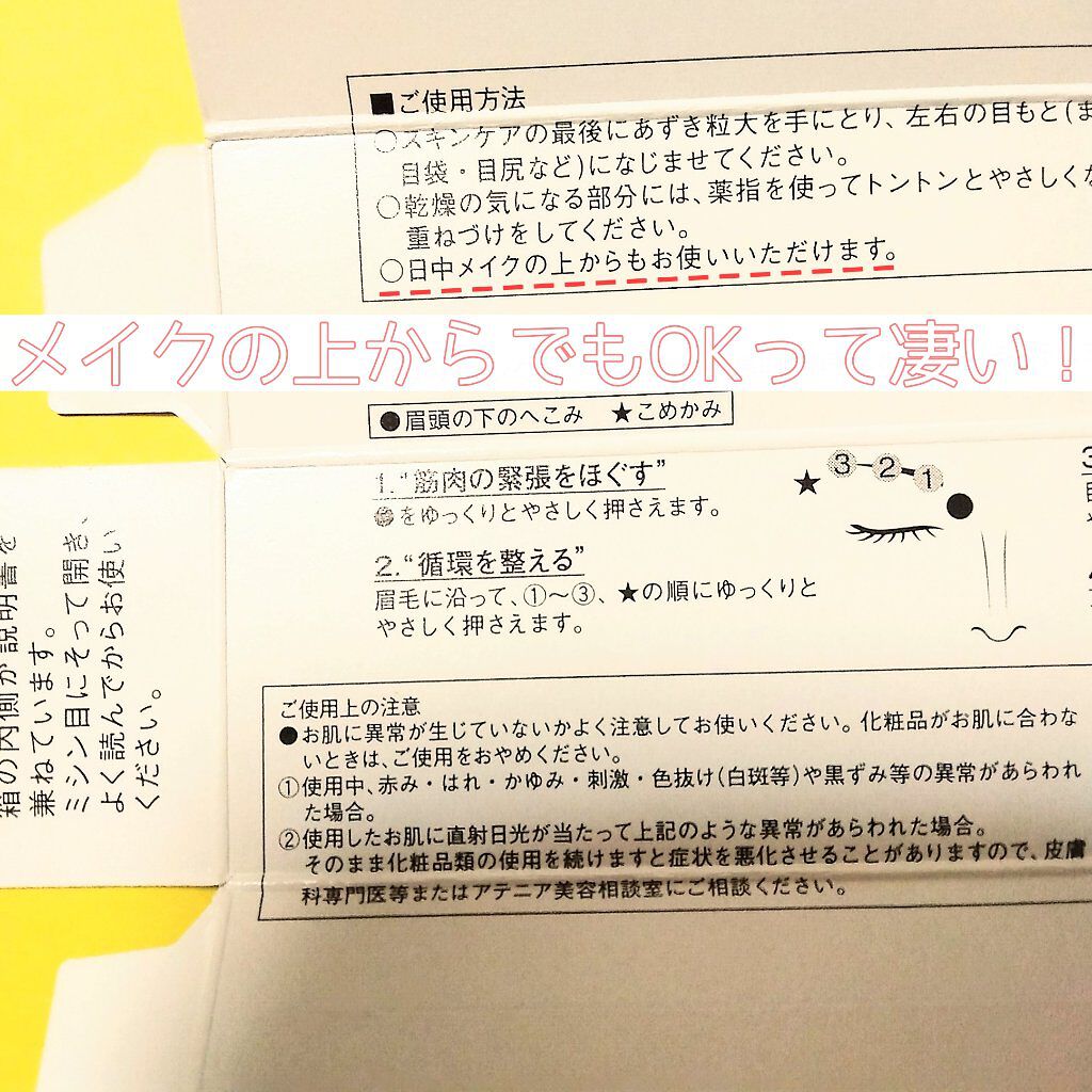 | 目元ケアランキング第13位 | 適量を出しやすいのと とってもお肌に馴染みがいいので 塗りやすいです | 詳細を見る | |