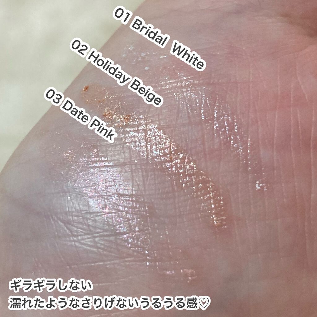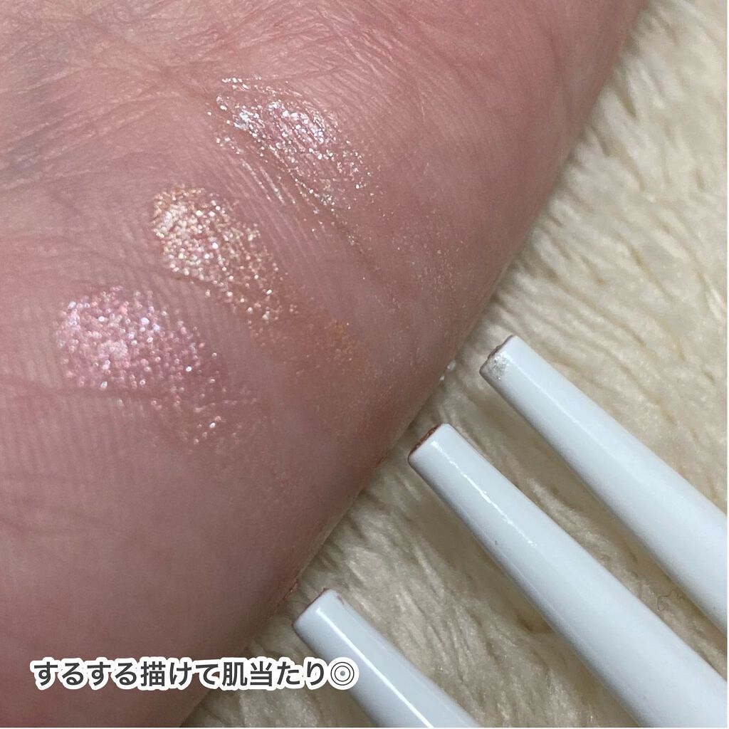 - とろける描き心地の極細ラメシャドウが限定新登場★ 下まぶたメイクを楽しむ✨ ピンポイントでラメラインを入れられる極細ラメシャドウ! 2mmの細芯で小回りが利くので細いラインが簡単に描ける♪ 柔らか芯なので、肌当たりはとても優しく、アイシャドウチップでのせるよりも手軽にラメラインが描けるアイテムです! 1度描きでしっかりキラキラする高輝度ラメで、重ね描きは不要* 1度乾いて密着すればとにかく落ちにくい✨水・汗・涙に強いウォータープルーフ処方!描きたての仕上がりを長時間キープ★