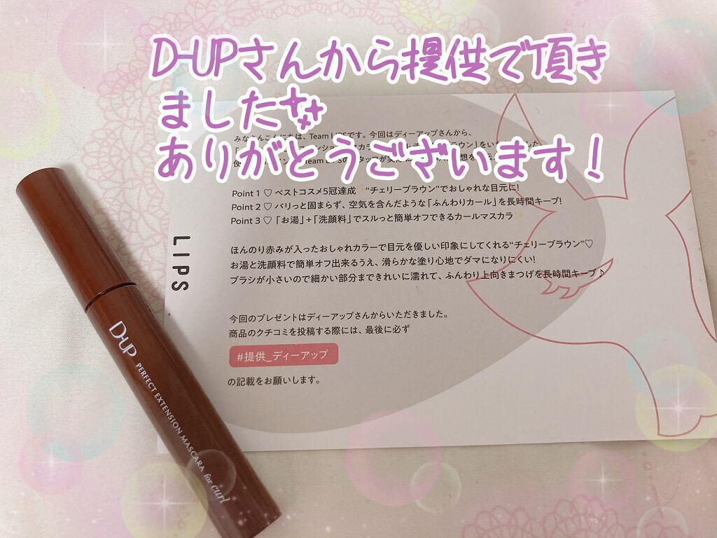 大人気のD-UPのマスカラ パーフェクトエクステンション マスカラ こちらのマスカラ私と相性が悪いのか、ビューラーでまつ毛をガンガンにあげてもマスカラを塗ると、すぐにカールが下がってしまいました💦 ただ色味はめちゃくちゃ可愛い☺️ これ使えないのは本当にもったいない😱 いろんな方の口コミを見ると、マスカラ下地と一緒に使うといいみたいです^^