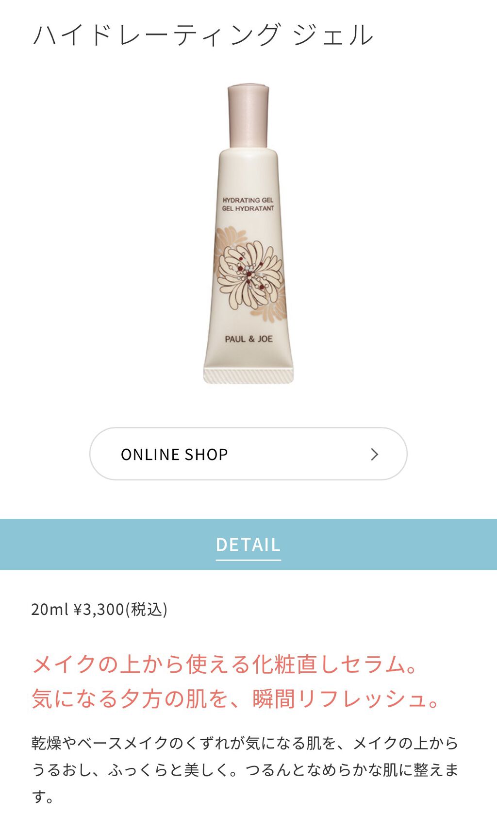 商品詳細情報PAUL & JOE BEAUTE ハイドレーティング ジェル