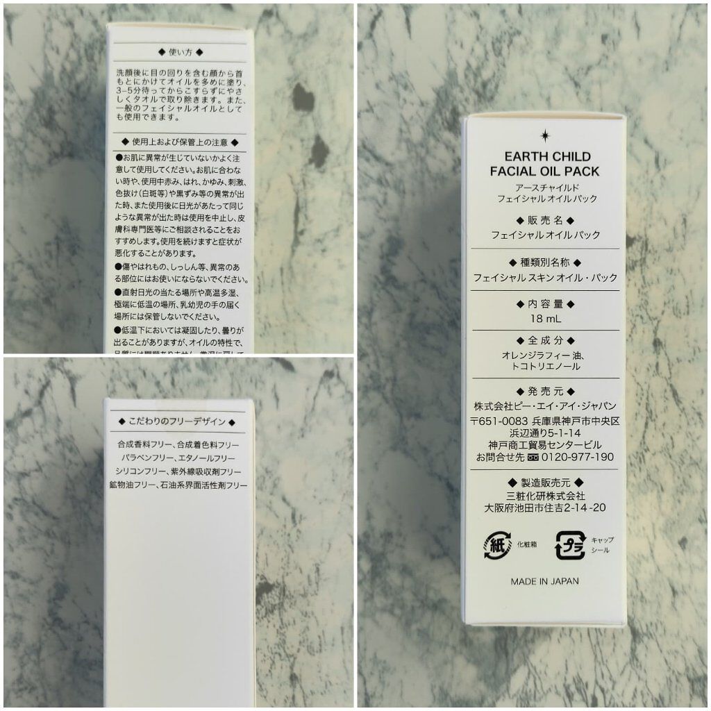 商品詳細情報EARTHCHILD フェイシャル オイル パック