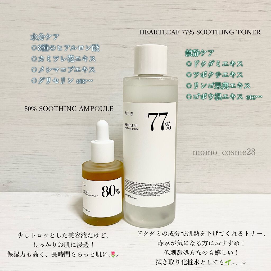 肌質に変化が🥹✨ どちらも鎮静効果抜群のドクダミエキスたっぷりでニキビや肌荒れを抑えてくれる✨ 安心して使える自然由来の肌に優しい成分をたっぷりと詰め込んだ化粧水♡ トナーだけだと保湿力が気になりますがアンプルと合わせて使う事でしっかり保湿でき水分バランスを整えてくれる💗