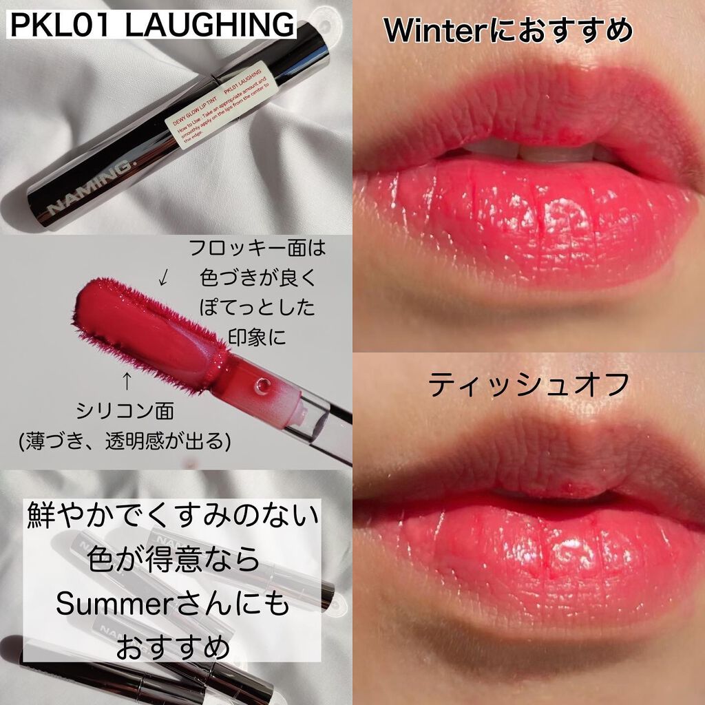 うるツヤ感あふれるティントリップ。見たまま発色でつけたての綺麗な色味をキープしてくれるNAMING.のティントリップはなんといってもガラス玉のようなちゅるんと透明感のある質感が魅力。 クリアなうるツヤ膜がぽってりとした唇を演出してくれます🫧ジューシーな03の日本限定カラーがお気に入りです🫶🏻🤍 01▶︎表情を明るく彩る赤みオレンジ 02▶︎上品で肌なじみの良いローズピンク 03▶︎デイリーに使えるピーチコーラル