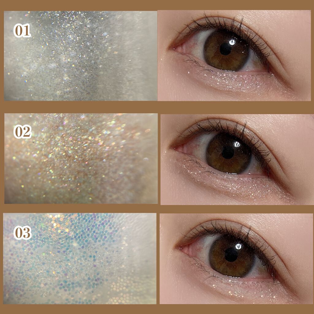 - リアルジュエリーパウダー配合でさらに神秘的で多彩な輝きを演出。 ウォーターベースでなめらかに目元に密着・すっきり長持ち。 ◇01 トゥインクルスター ピュアなホワイトベースにグリーン&オレンジのカラーが神秘的に輝くラメグリッター。 ◇02 スイートドリーム 愛らしいピンクをベースにブルー&コーラルのラメ, オレンジの6角グリッターが輝きます。 ◇03 スターリットナイト 夜空に輝く天の川の様なシルバー、ゴールドのラメを組み合わせたシャンパン系のカラー。