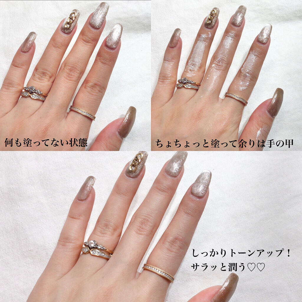 私もよく見たらカサカサで 毛穴やシワの凹凸が目立って 嫌だった💦 塗るだけで手の毛穴やシワが瞬時に隠れて ワントーン明るい綺麗な ツルっとした手元になるクリーム✨ その陰影に白ゆび姫に配合されている マイクロパウダー塗りこめば、 しっかり溝を埋めてくれ、 さらにホワイトパウダーが覆うことで シワを隠し陰影が消え 見た目が綺麗な美しい手になりますよ❣️